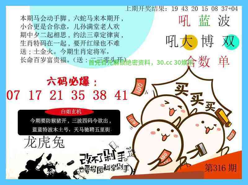 | 317期:五肖 | 龙马兔虎羊 | 開:發00 |